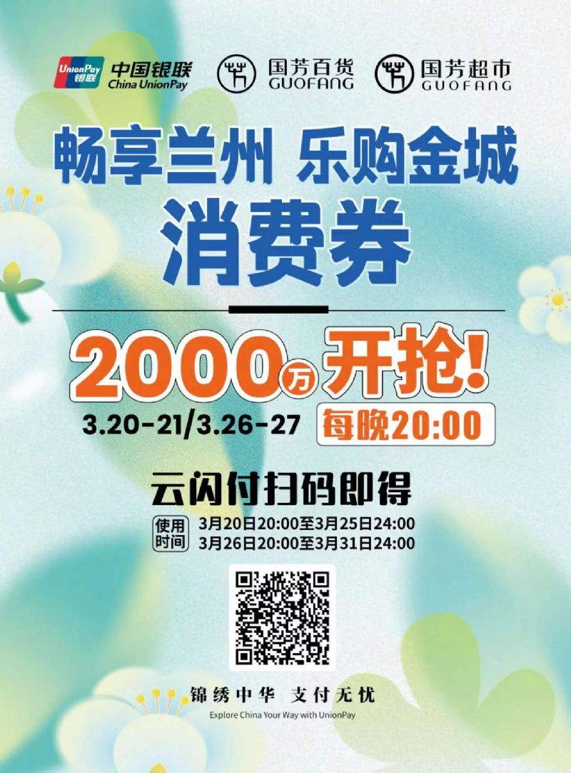 本次消費(fèi)券具體發(fā)放時(shí)間為3月20日至3月31日,將分2個階段4個批次發(fā)放,分別為3月20日、3月21日、3月26日、3月27日的每晚20:00至24:00。消費(fèi)券涵蓋國芳百貨、國芳超市以及國芳百貨內(nèi)的餐飲場所等3個場景共計(jì)38萬余張,消費(fèi)范圍覆蓋美妝、服飾、餐飲及國芳超市等多品類消費(fèi)場景,旨在激發(fā)春季消費(fèi)潛力,鞏固傳統(tǒng)消費(fèi),共同繁榮城關(guān)商貿(mào)經(jīng)濟(jì),助推零售商業(yè)市場平穩(wěn)發(fā)展。(廣大市民將通過“云閃付”APP領(lǐng)取并核銷,具體活動規(guī)則、適用范圍等信息可登錄“云閃付”APP查看。)