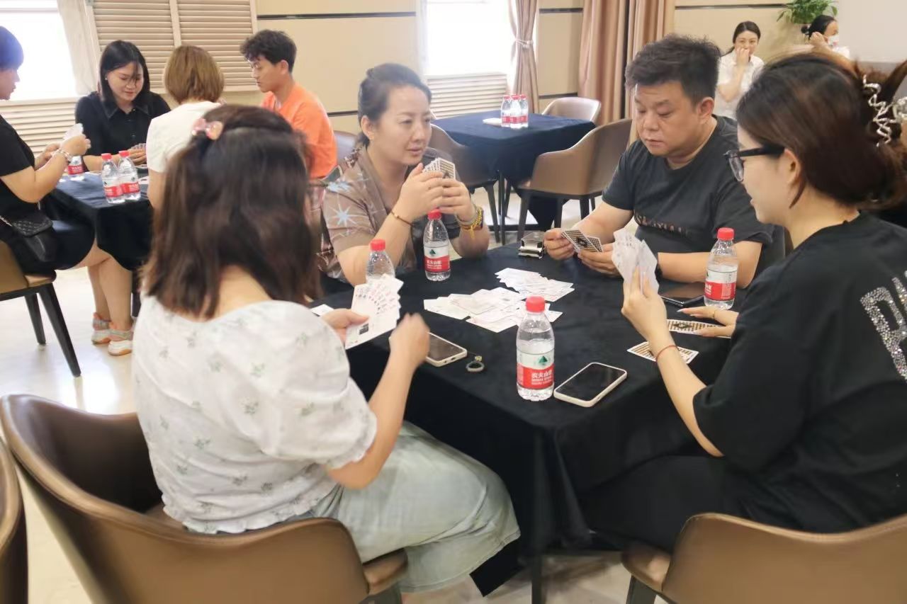 在運動會的摜蛋比賽現(xiàn)場,氣氛熱烈而又緊張。一張張牌桌整齊排列,參賽選手們兩兩相對而坐,神情專注而投入。他們的目光緊緊鎖住手中的牌,大腦飛速運轉(zhuǎn),思考著出牌策略。每一次出牌都顯得深思熟慮,又充滿了果斷和自信。